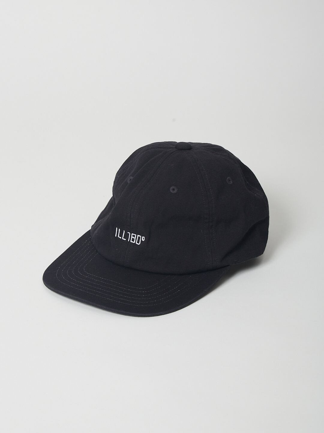 ILL180° ロゴの刺繍がフロントに⼊った 定番のコットンキャップ。