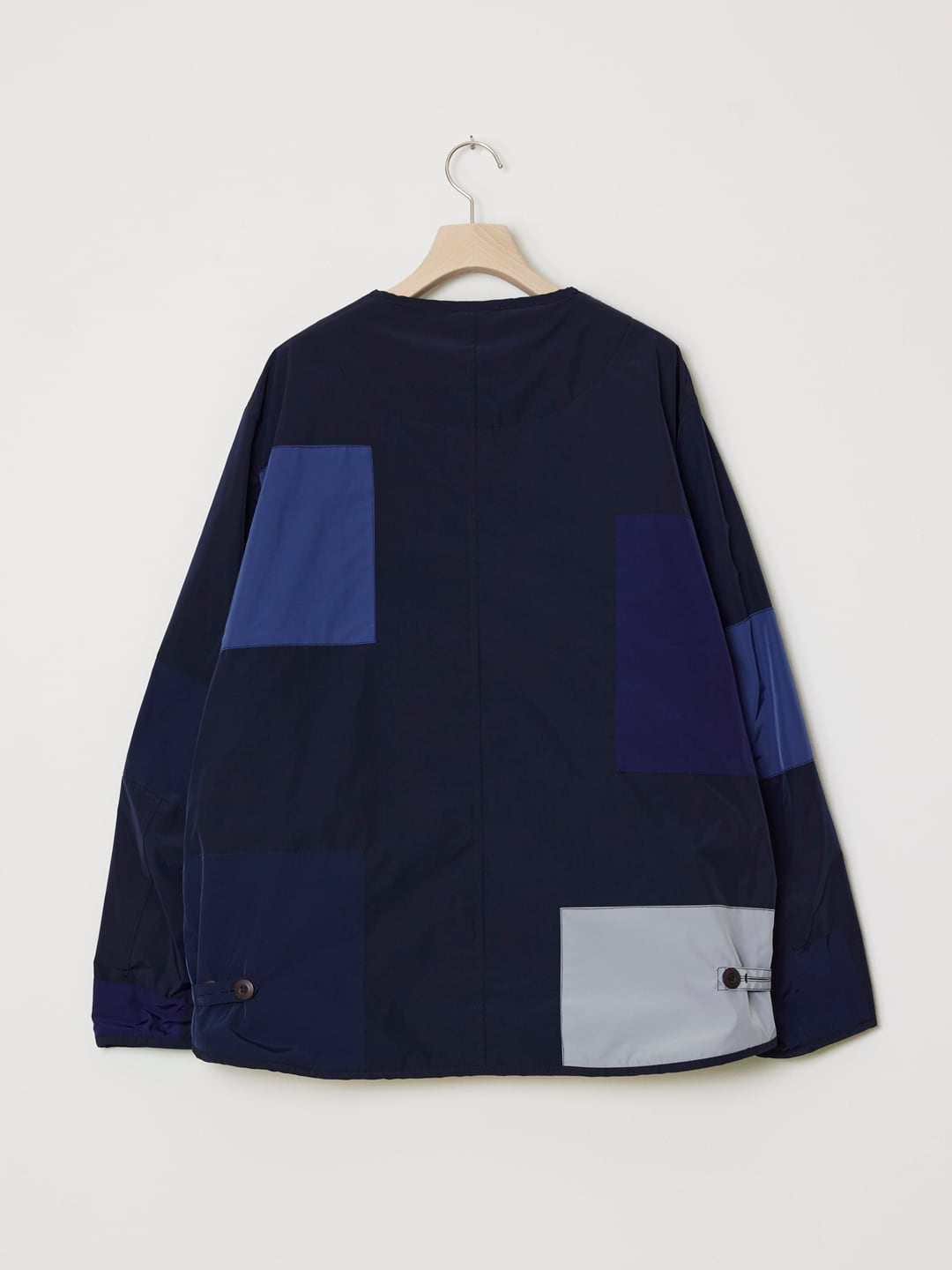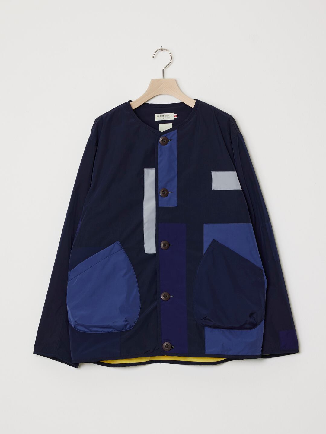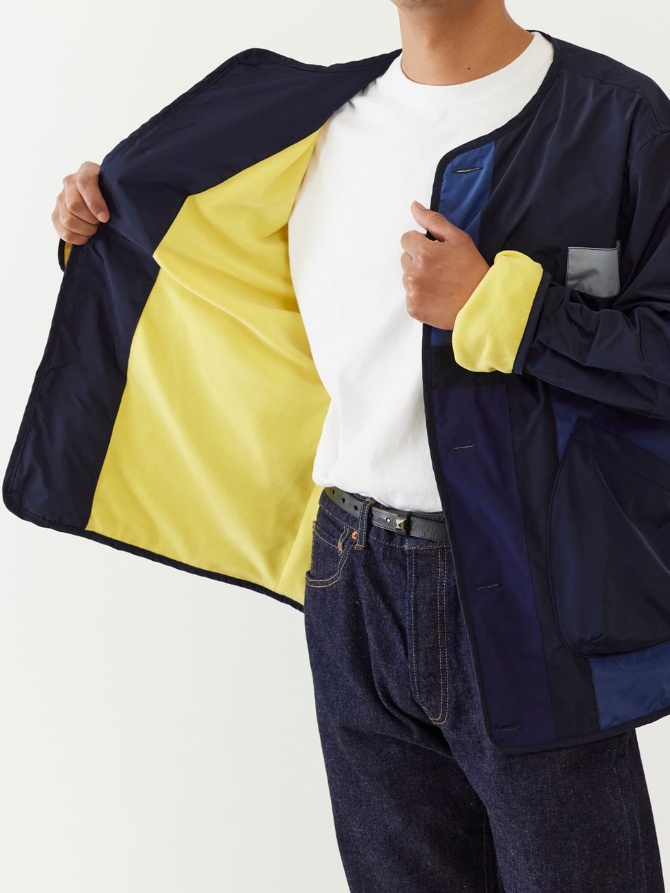 dip × ILL180° のパッチワークブルゾン。US ARMYのライニングをベースとし、パッチワークに仕上げられたジャケットの裏にはフリース素材を使⽤。インナーにもアウターにも着回しできる様にアレンジされています。コムデギャルソンオムの⽴ち上げに参画し、⼤⼿セレクトショップの顧問などの経歴を持つ⽥⼝⽒のブランドdipとのダブルネームアイテムです。
