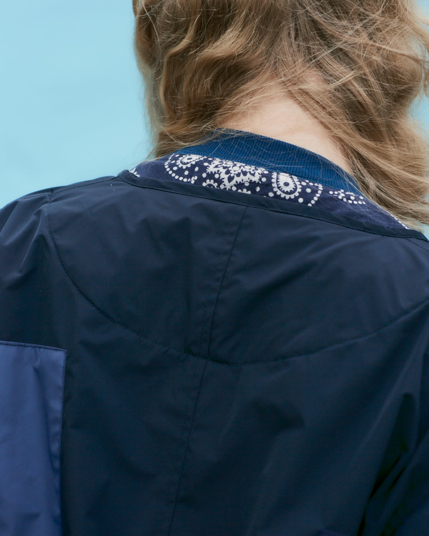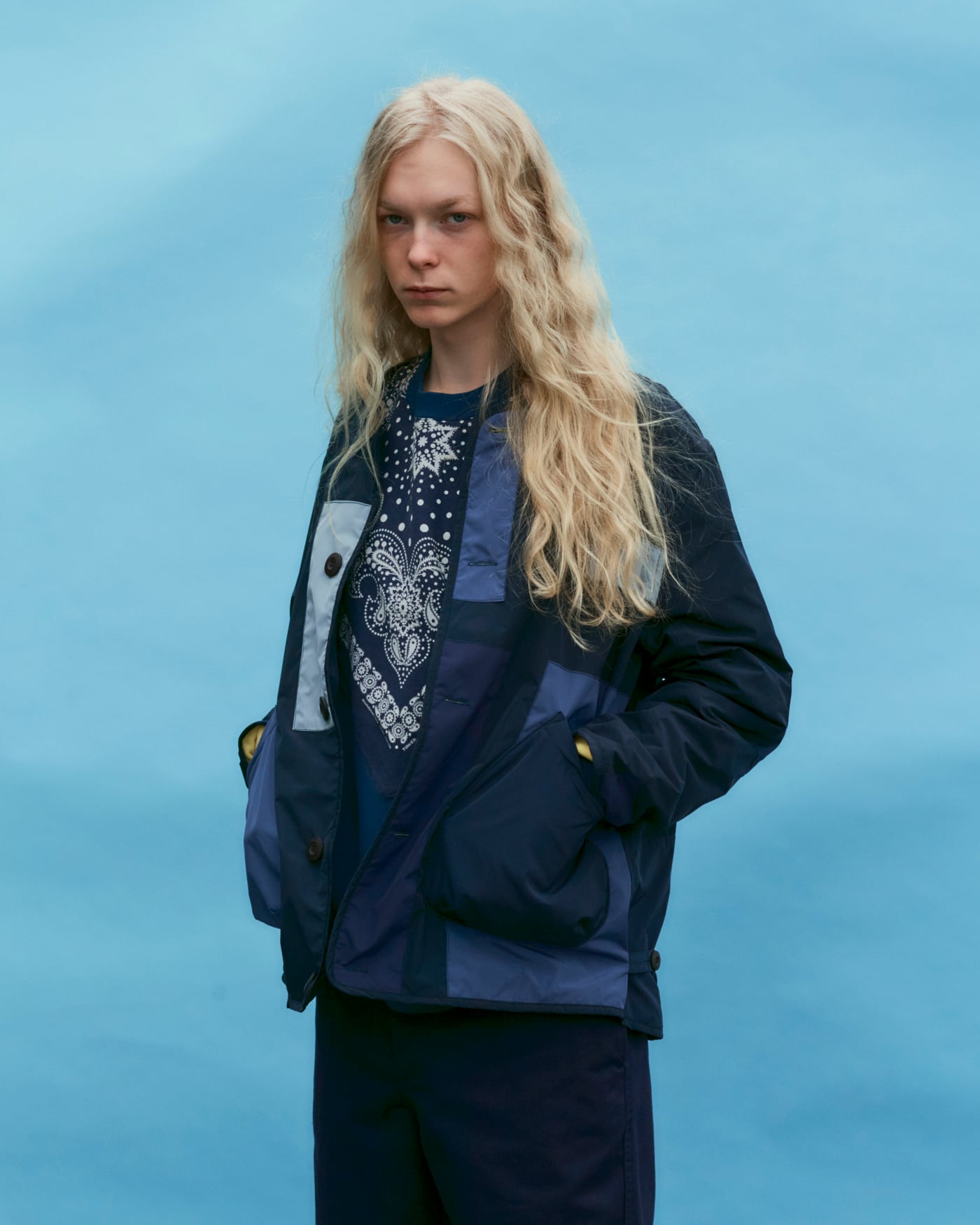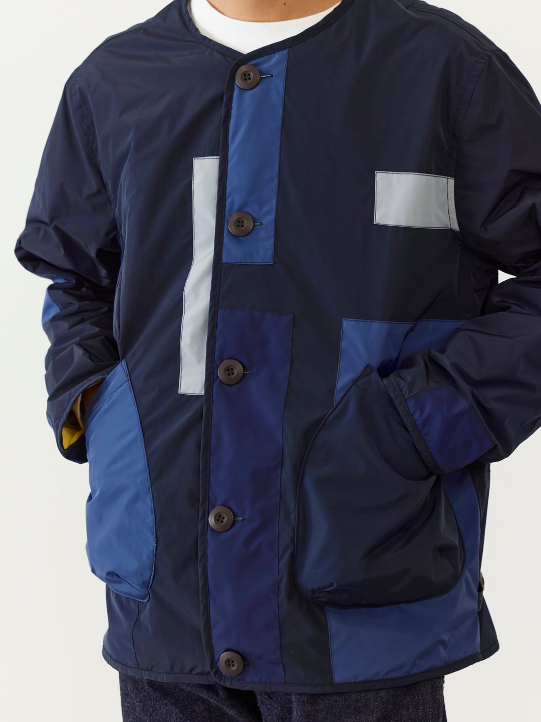 dip × ILL180° のパッチワークブルゾン。US ARMYのライニングをベースとし、パッチワークに仕上げられたジャケットの裏にはフリース素材を使⽤。インナーにもアウターにも着回しできる様にアレンジされています。コムデギャルソンオムの⽴ち上げに参画し、⼤⼿セレクトショップの顧問などの経歴を持つ⽥⼝⽒のブランドdipとのダブルネームアイテムです。