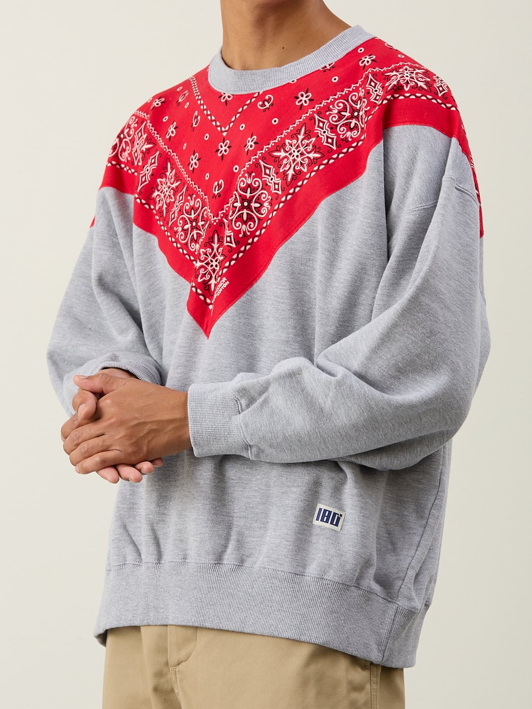 ヴィンテージのバンダナを使⽤したスウェットシャツ。