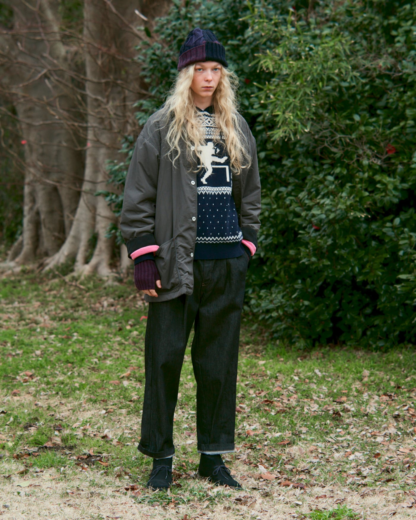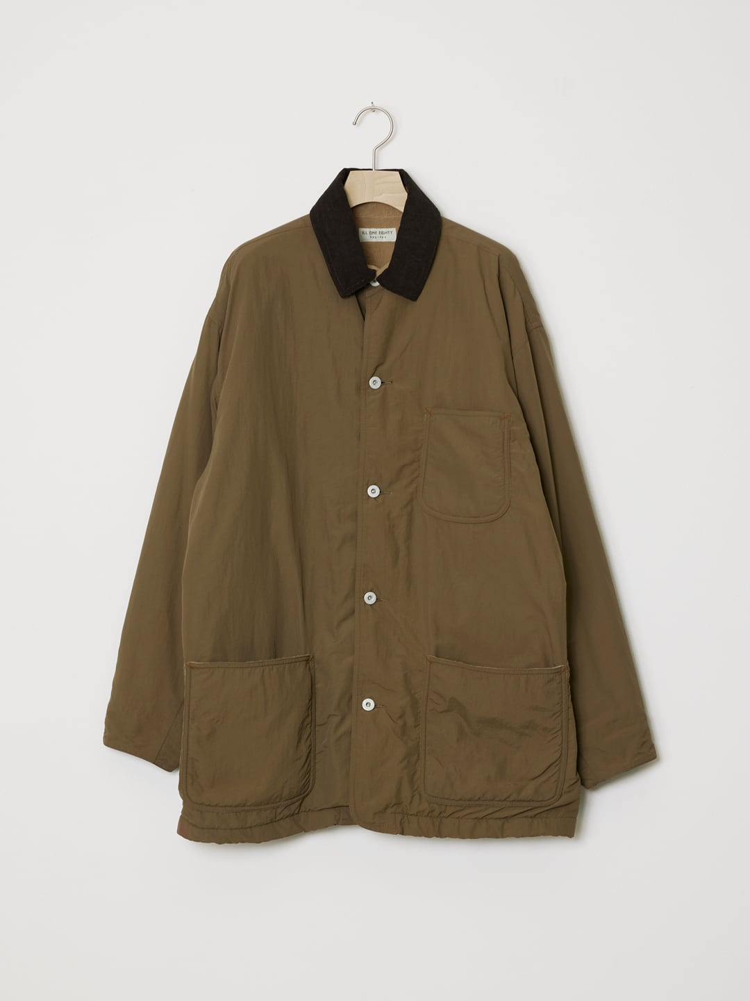 ヴィンテージのカバーオール型を現代的なシンセティック素材に置き換えたジャケット。